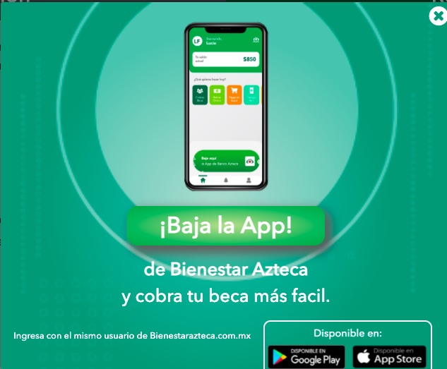 Ingresar a esta página o bajar la app BienestarAzteca.com.mx